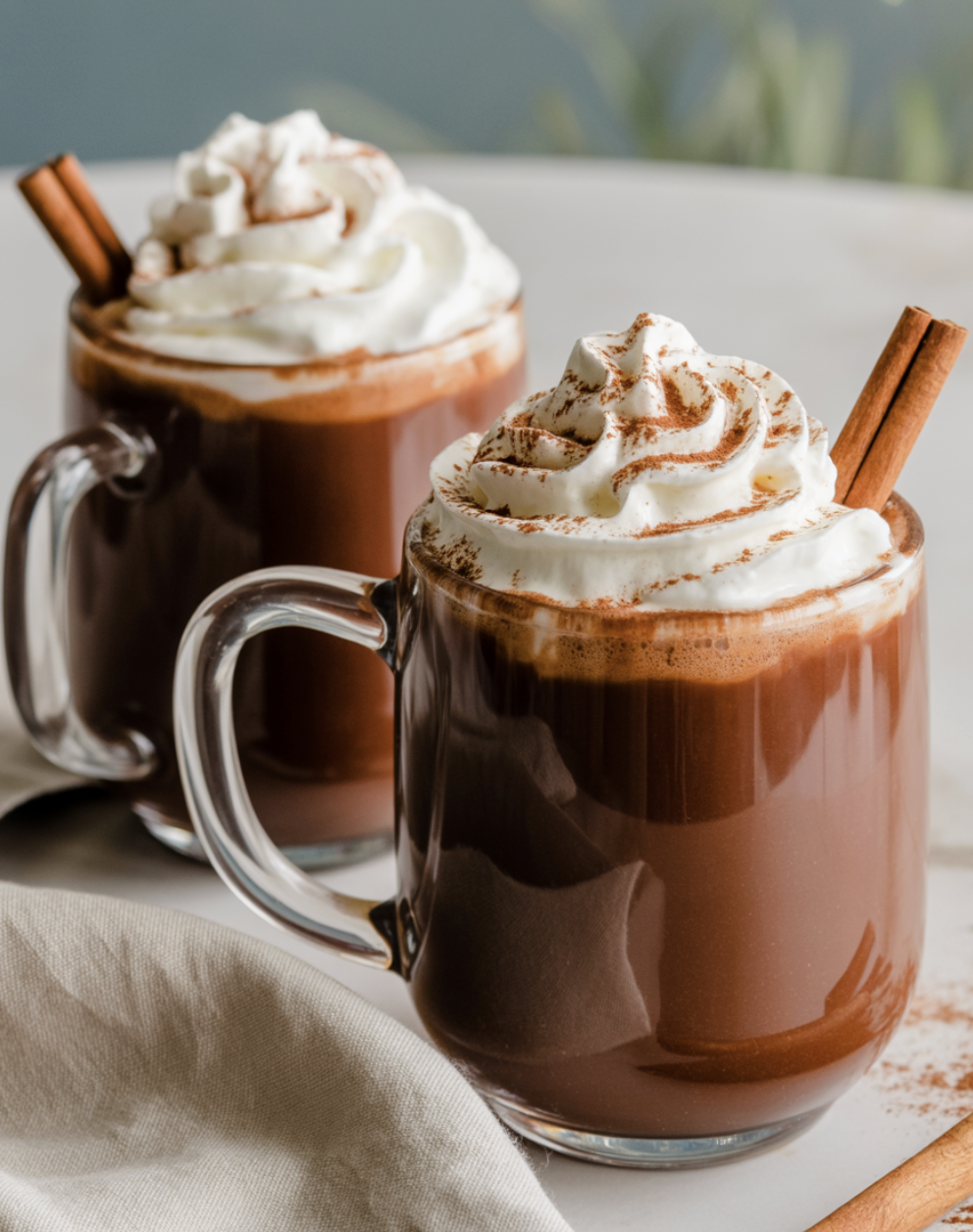 Imagine hot chocolate, but fall-style. This one’s thick, rich, and perfect for a rainy evening.