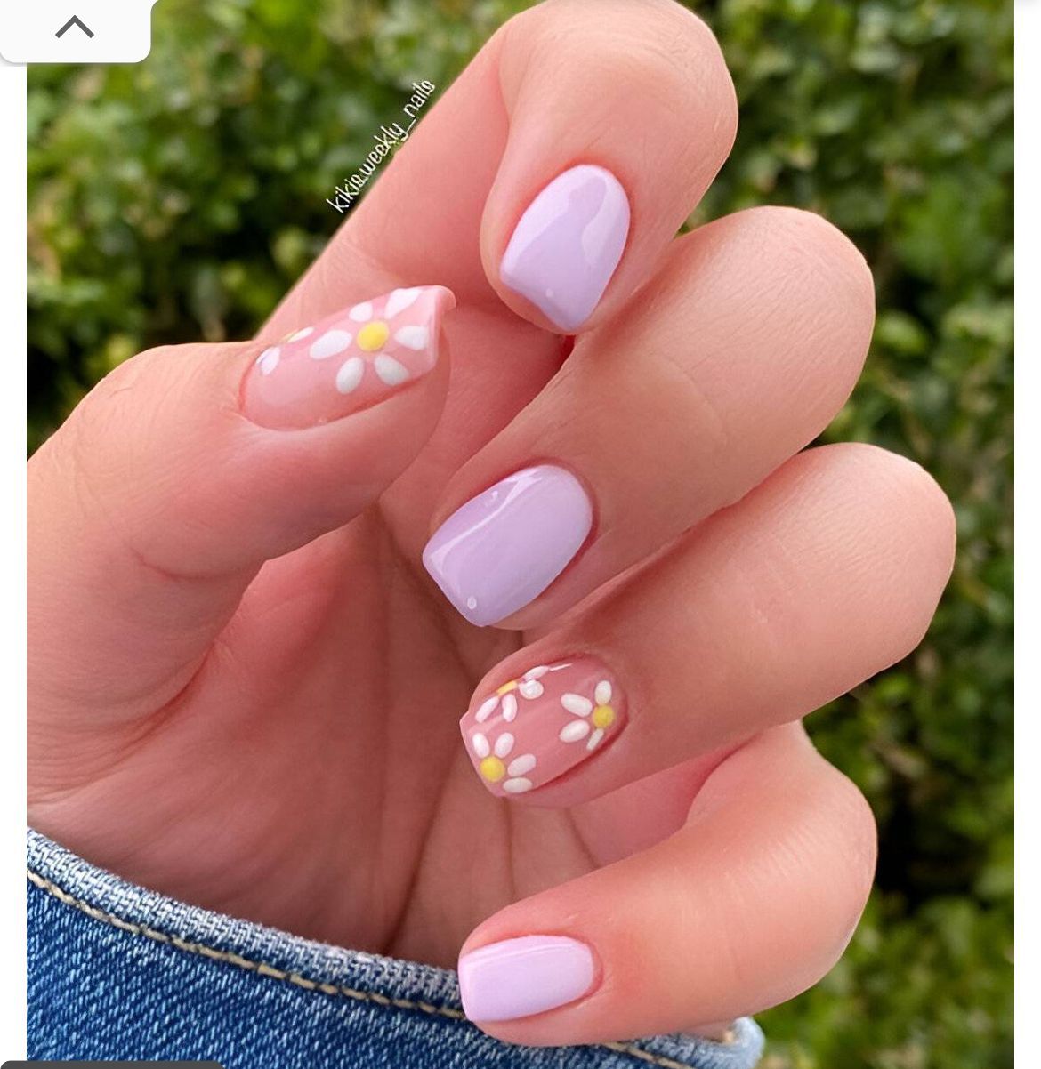 Soft purples, tiny flowers, pastel tips, little details that feel cute but not overwhelming. And honestly, these are the ones I keep going back to again and again because they just work. Every time.